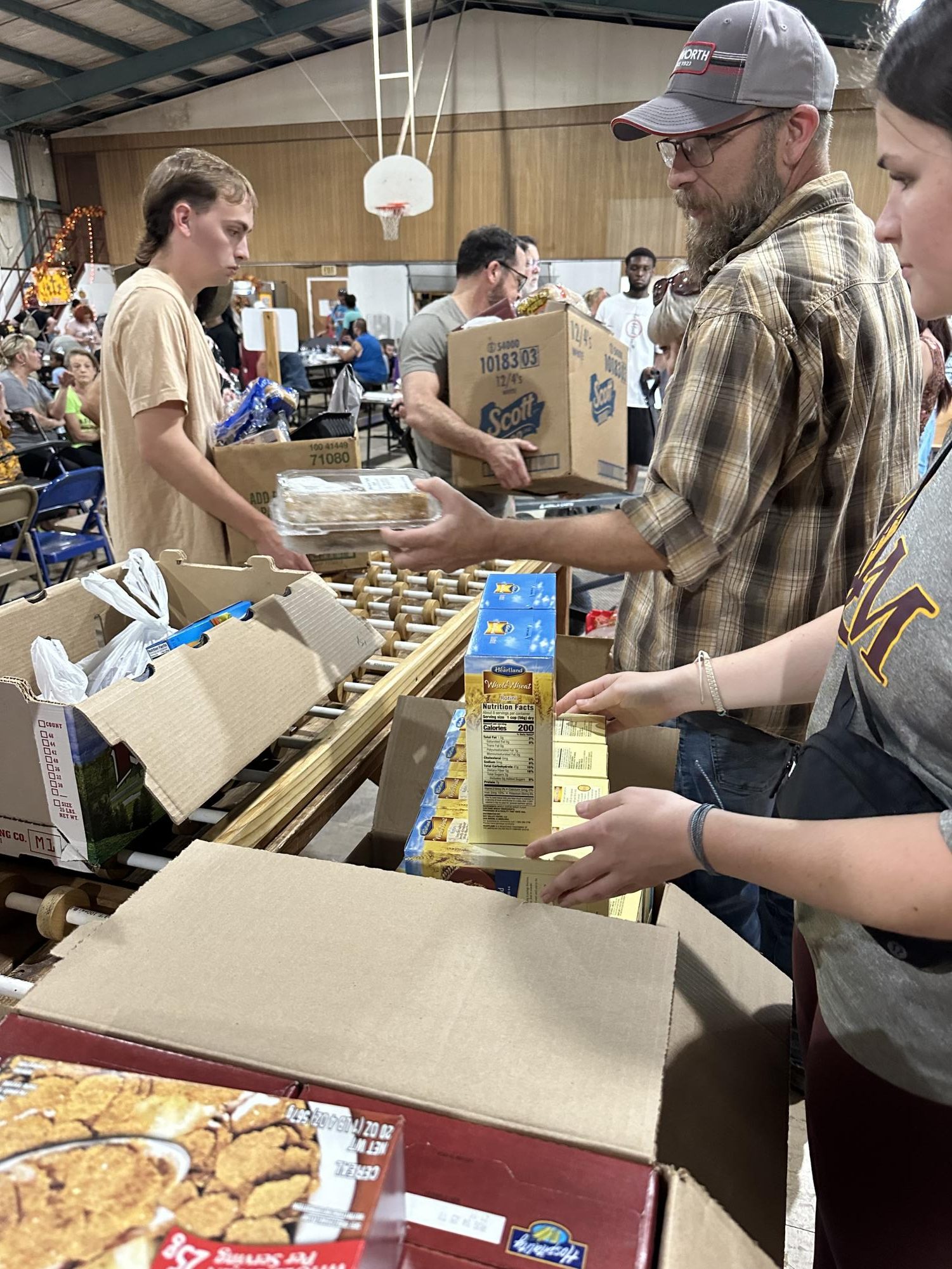 new clothes, hygiene products, food and water. TOX members loaded attendees’ boxes with necessities, packed goods in attendee’s form of transportation and served hot plates to those in need.